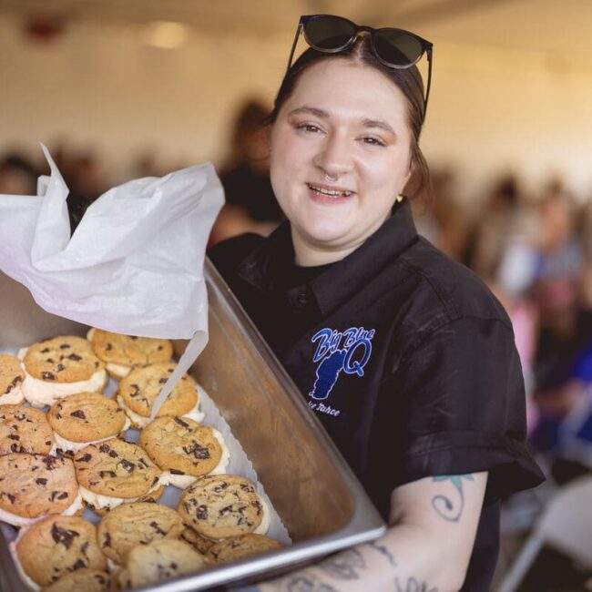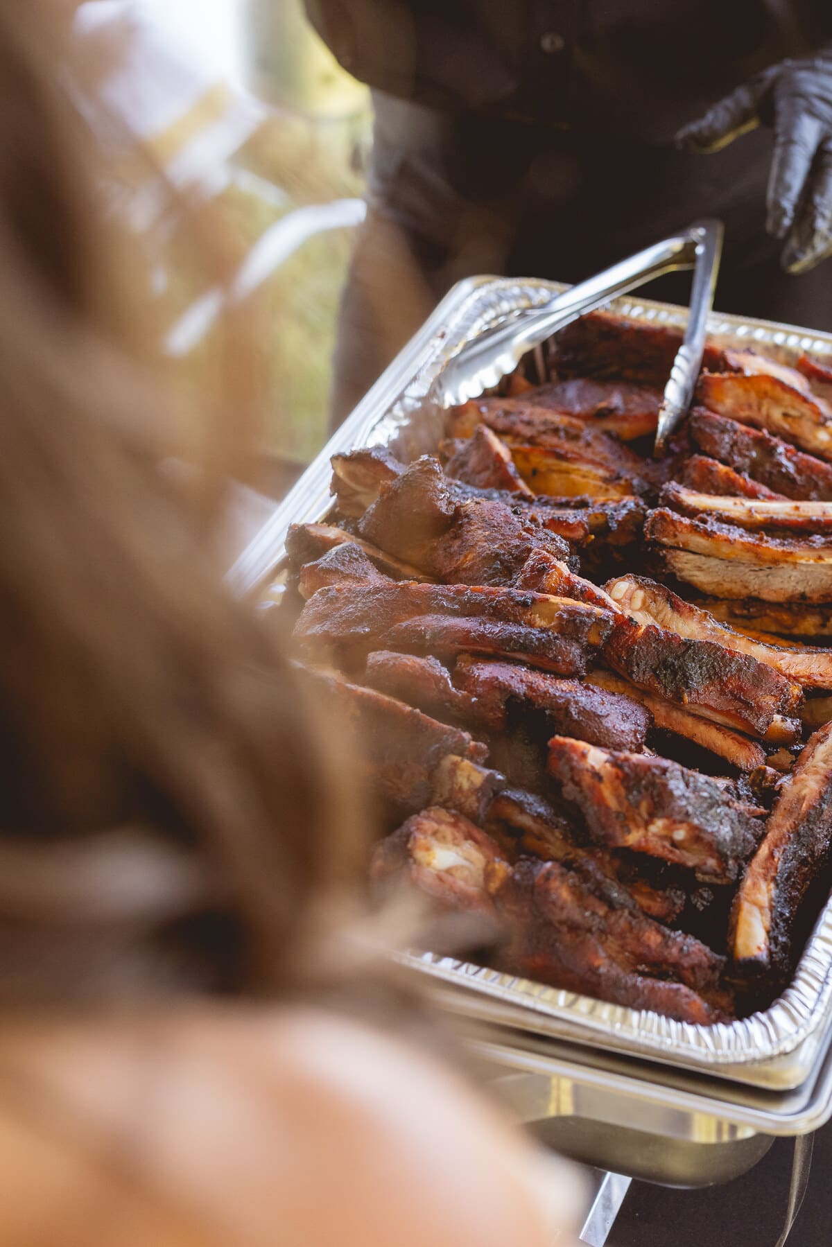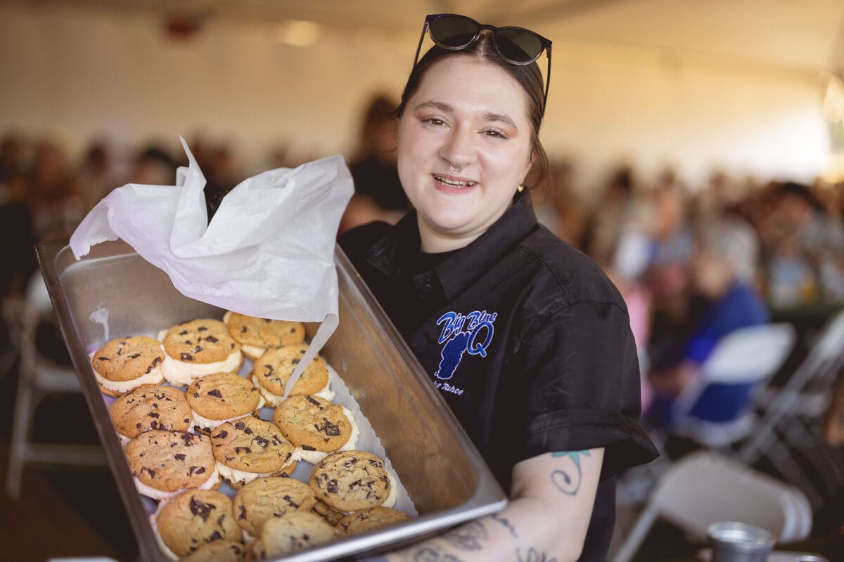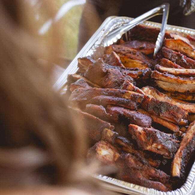 Every Boots & Bling ticket included a high-end BBQ dinner from Big Blue Que, featuring St. Louis ribs, grilled chicken, brisket, ranch-style beans, potato salad, green salad, and homemade ice cream sandwiches.